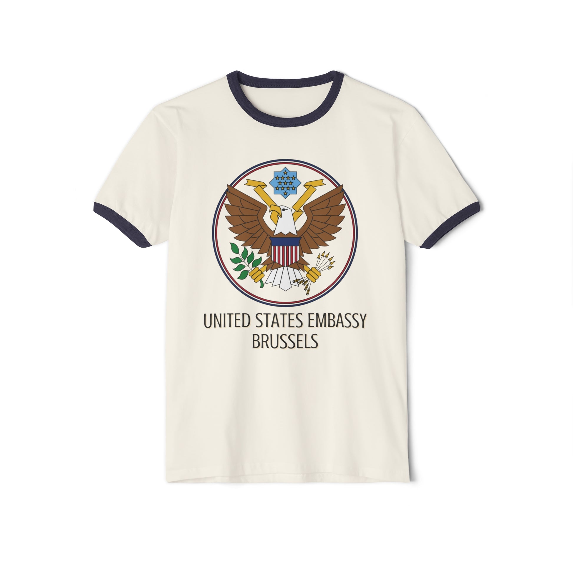 These custom ringer t-shirts are an all-time classic that offer clean style and a whole lotta attitude in one timeless package. Handsomely decorated with our own Art Deco take on the US Great Seal, these t-shirts exude post pride.