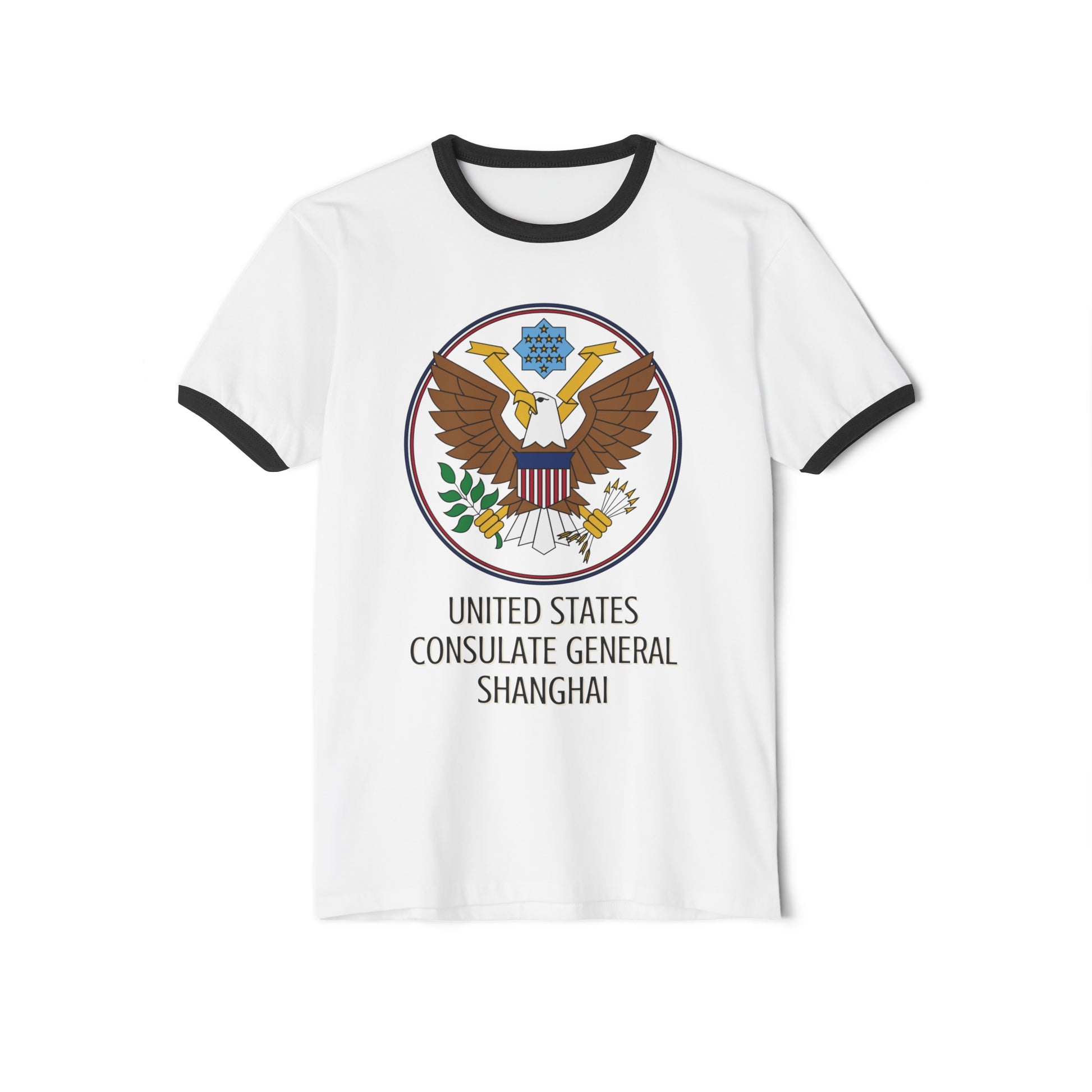 These custom ringer t-shirts are an all-time classic that offer clean style and a whole lotta attitude in one timeless package. Handsomely decorated with our own Art Deco take on the US Great Seal, these t-shirts exude post pride.