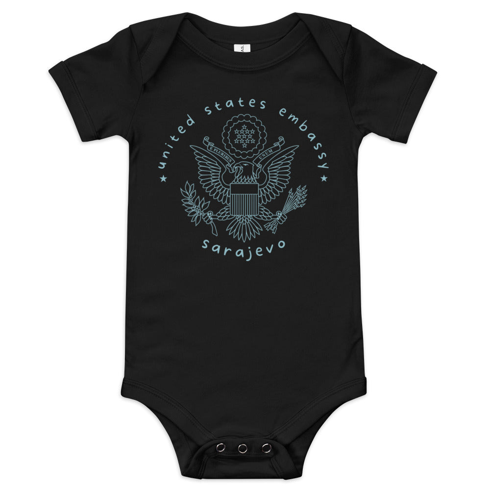 Dress your baby to the nines with this 100% cotton one piece. It has three snap leg closure for easy changing, a comfortable envelope neckline, and a beautiful print that's bound to get the baby all happy and giggling. If not, at least anyone seeing the baby is sure to get a kick out of the fun design.