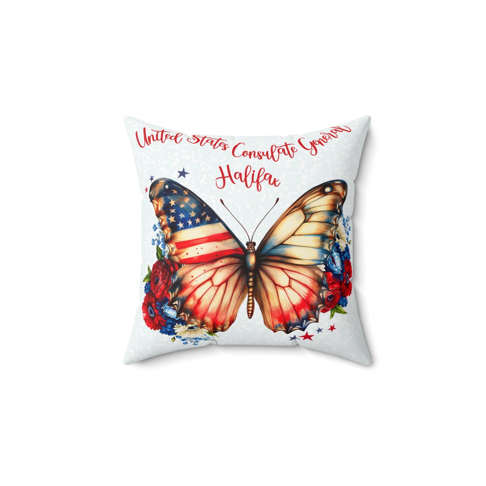 Beautiful and intricate design features a large butterfly with an abstract blend of the US Flag for coloring, sitting on a bed of beautiful flowers. This statement piece will make a great addition to your sitting room or as a gift for a loved one. Square pillow comes in two sizes: 14" and 18". 100% Polyester cover 100% Polyester pillow included Double sided print Concealed zipper