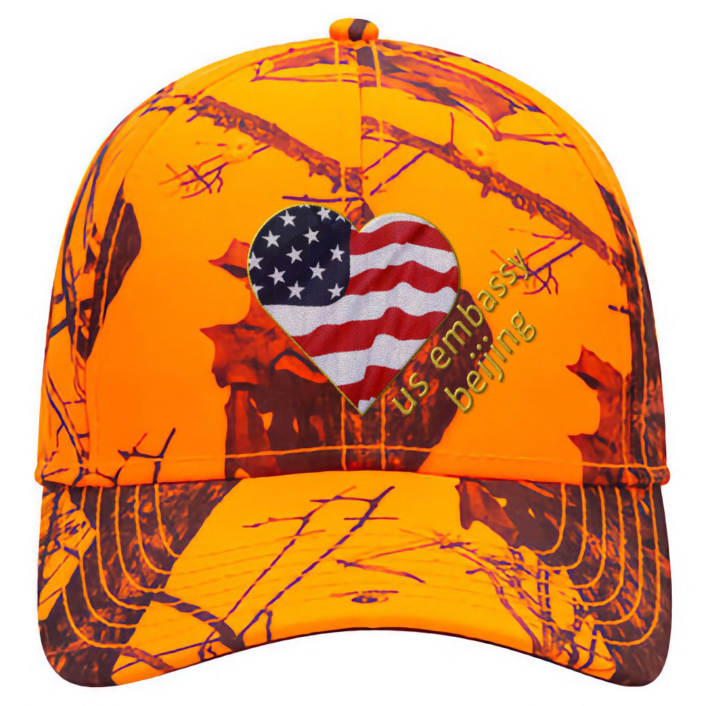 Top quality, structured, camouflaged 6 Panel hat is offered in six printed designs. These printed designs are Mossy Oak® favorites which help you keep your head out of sight in a variety of environments. The only thing that won't melt into the background is the striking and fun ♥ logo featuring a centered US Flag heart and an off-center post name. Wear this proudly anywhere you want to be seen and not seen at the same time!