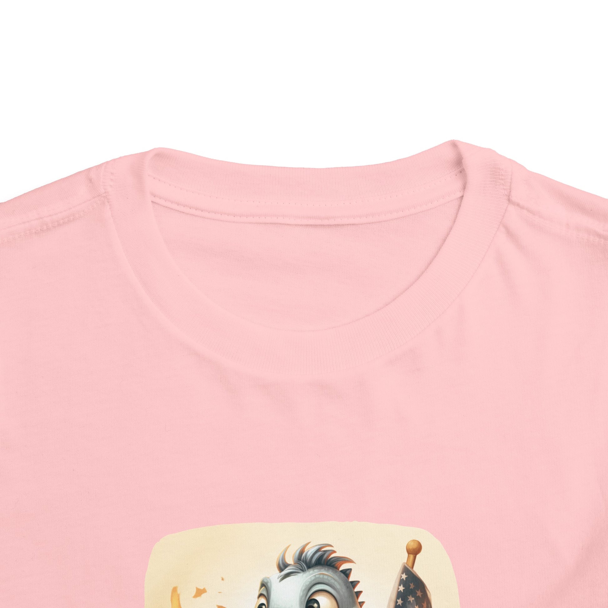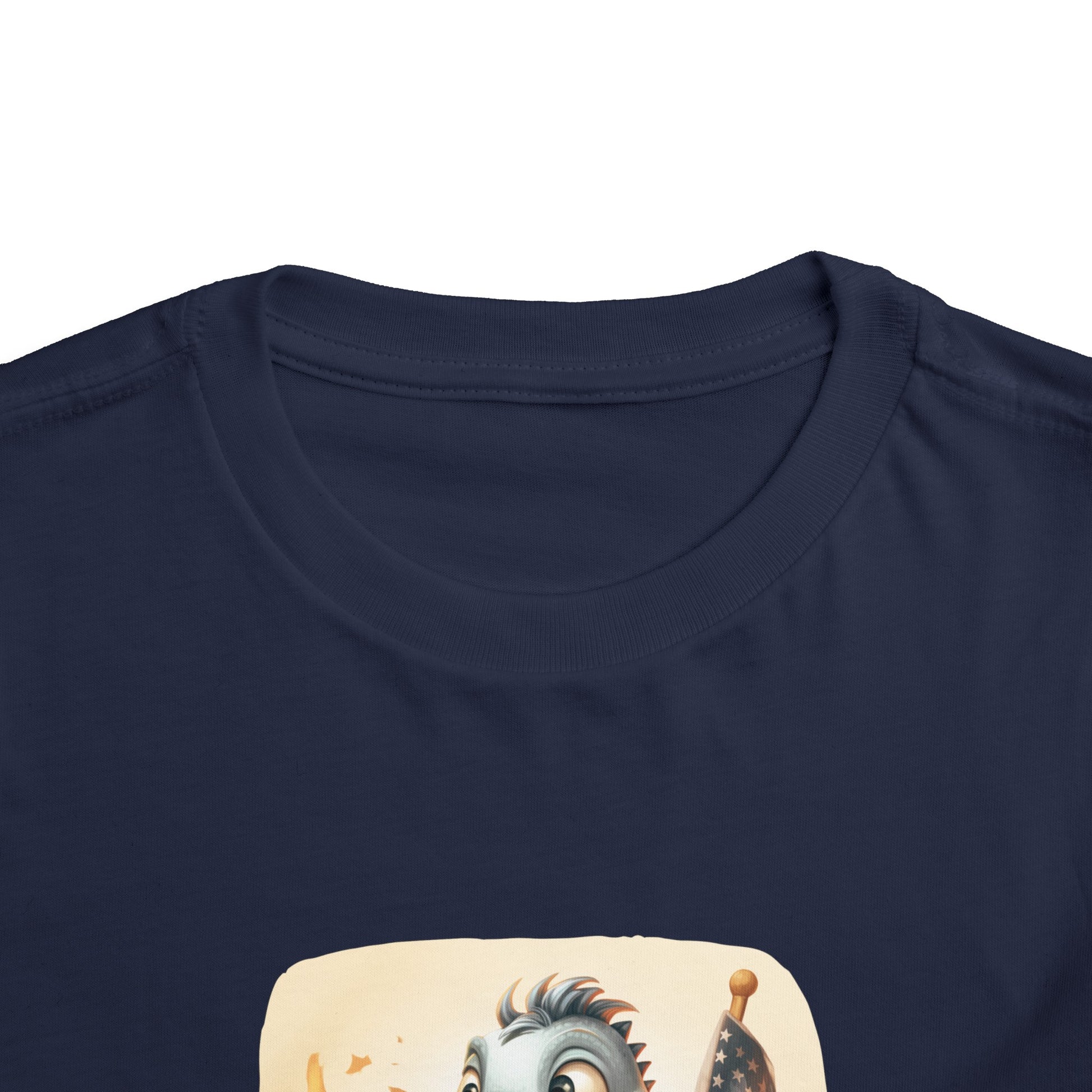 Uplift any child's wardrobe with a custom dinosaur kid's t-shirt. The Bella Canvas short sleeve tee for toddlers is a 100% Airlume combed and ring-spun cotton jersey with a tear-away label for extra comfort. Choose your favorite color out of a big variety, and make unique staples that toddlers will happily wear every day. Each t-shirt features a patriotic pre-historic dinosaur and post's name in a unique, jurassic-inspired font. 100% Airlume combed and ringspun cotton (fiber content may vary for different colors) Extra light fabric (3.9 oz/yd² (132 g/m²)) Tear-away label 2T 3T 4T 5T Width, in 12.00 13.00 14.00 15.00 Length, in 15.50 16.50 17.50 18.320