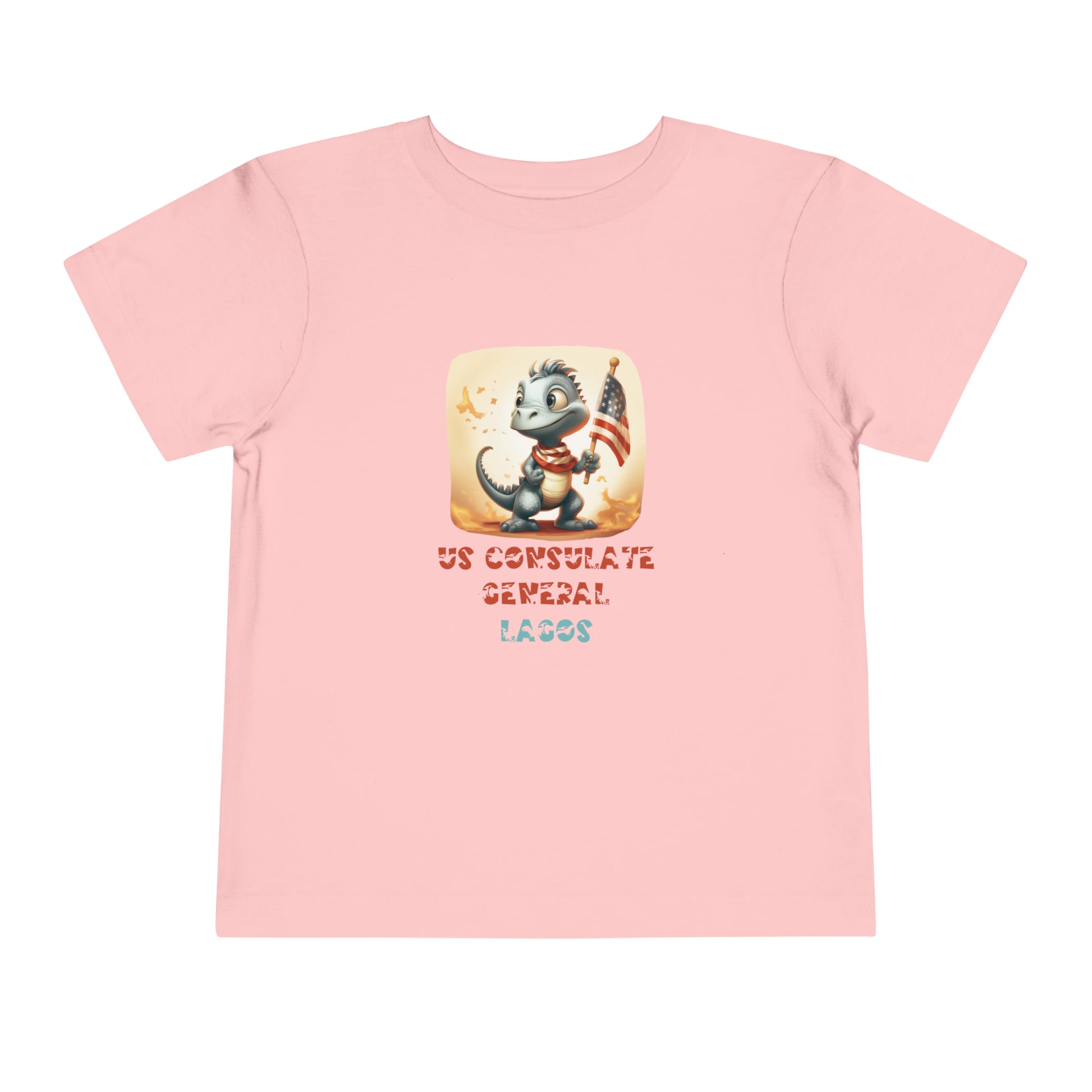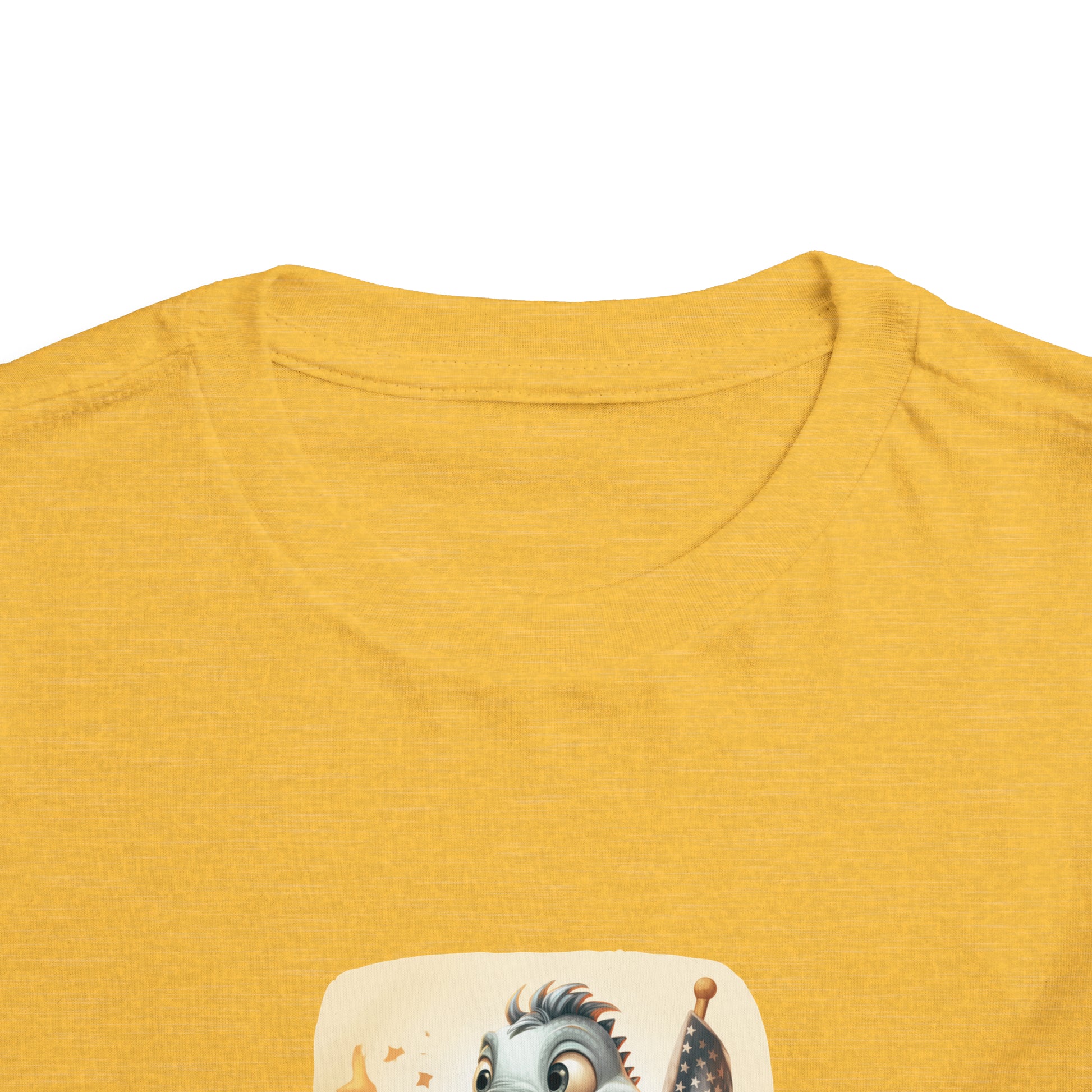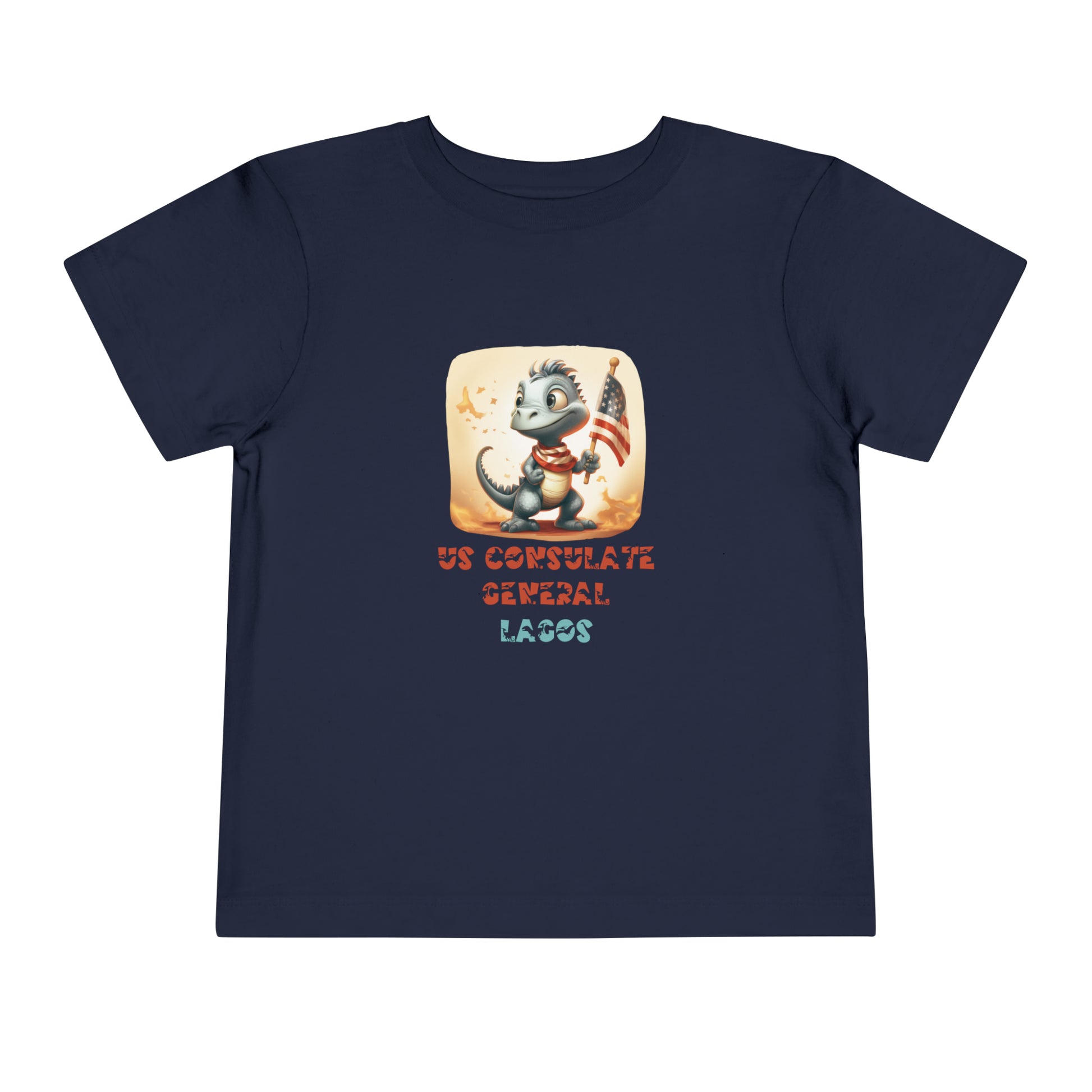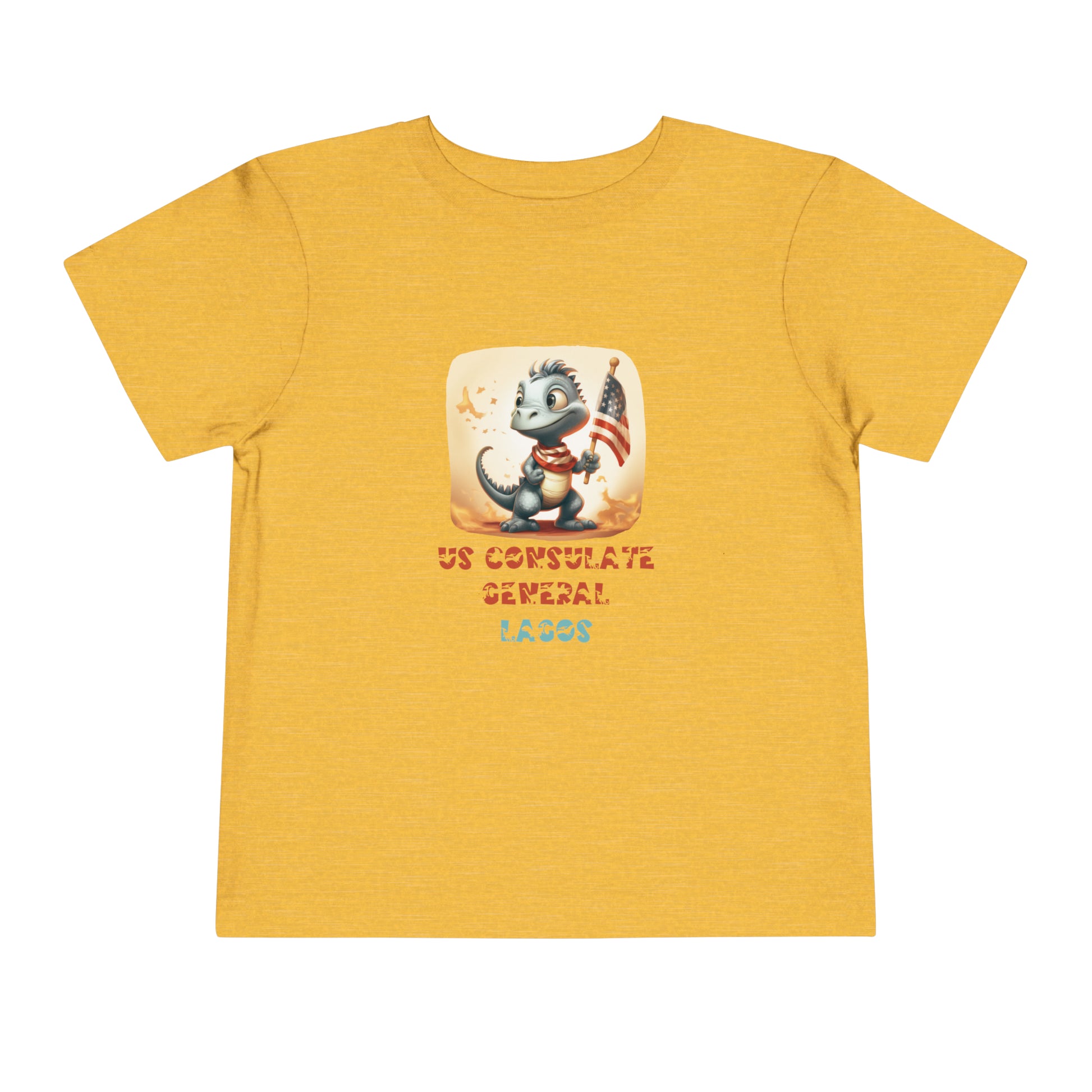 Choose your favorite color out of a big variety, and make unique staples that toddlers will happily wear every day. Each t-shirt features a patriotic pre-historic dinosaur and post's name in a unique, jurassic-inspired font.
