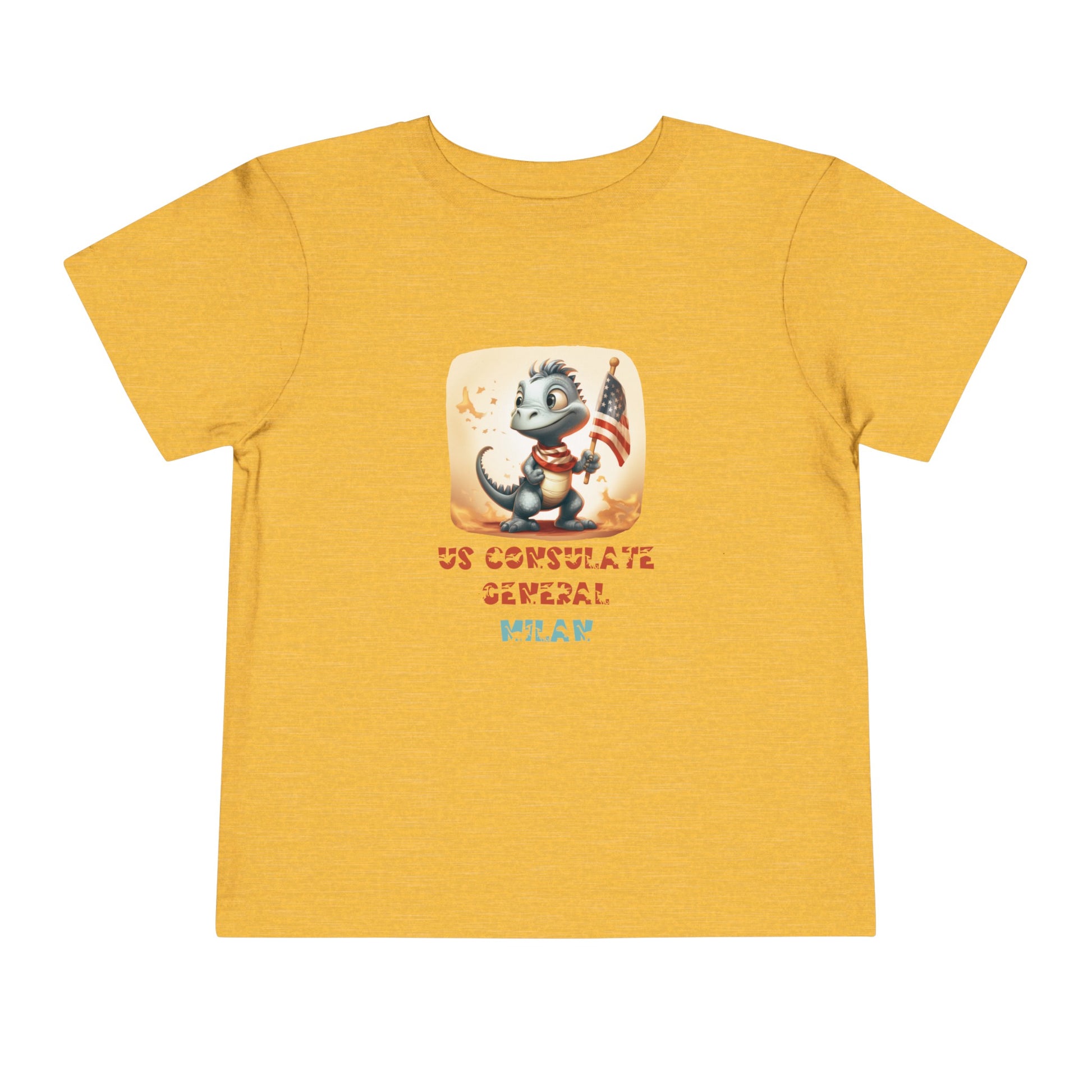 Uplift any child's wardrobe with a custom dinosaur kid's t-shirt. The Bella Canvas short sleeve tee for toddlers is a 100% Airlume combed and ring-spun cotton jersey with a tear-away label for extra comfort. Choose your favorite color out of a big variety, and make unique staples that toddlers will happily wear every day. Each t-shirt features a patriotic pre-historic dinosaur and post's name in a unique, jurassic-inspired font. 100% Airlume combed and ringspun cotton (fiber content may vary for different colors) Extra light fabric (3.9 oz/yd² (132 g/m²)) Tear-away label 2T 3T 4T 5T Width, in 12.00 13.00 14.00 15.00 Length, in 15.50 16.50 17.50 18.253