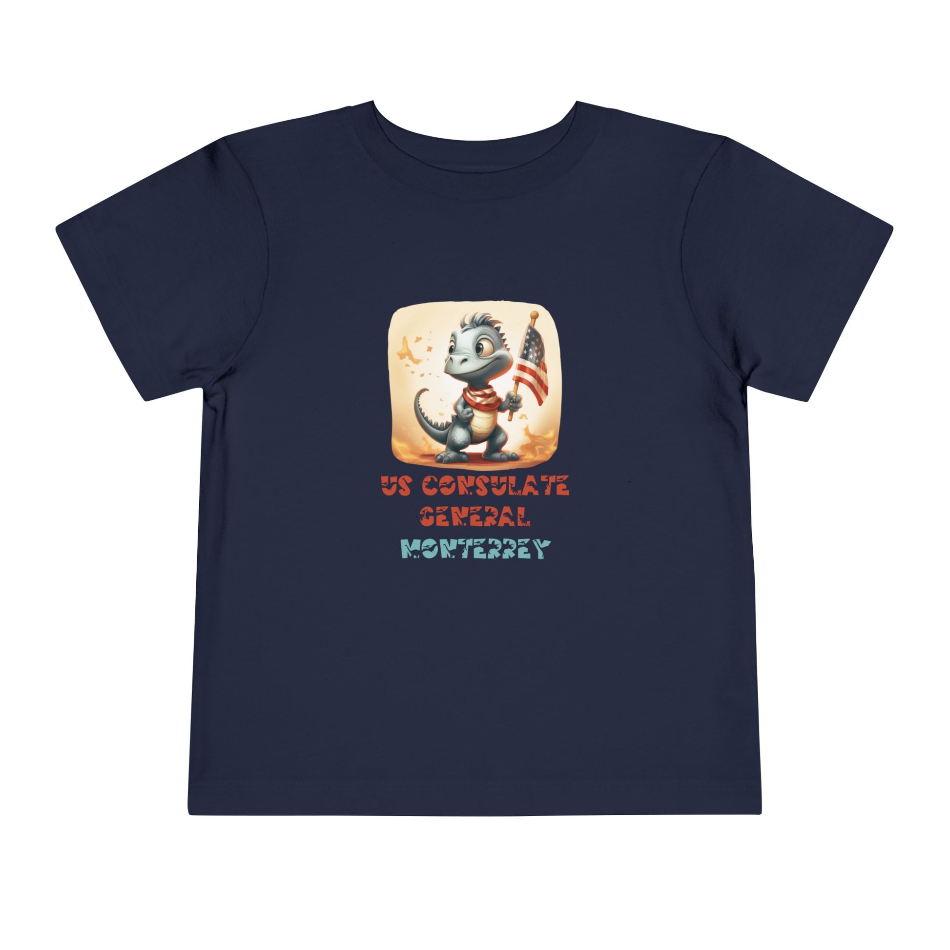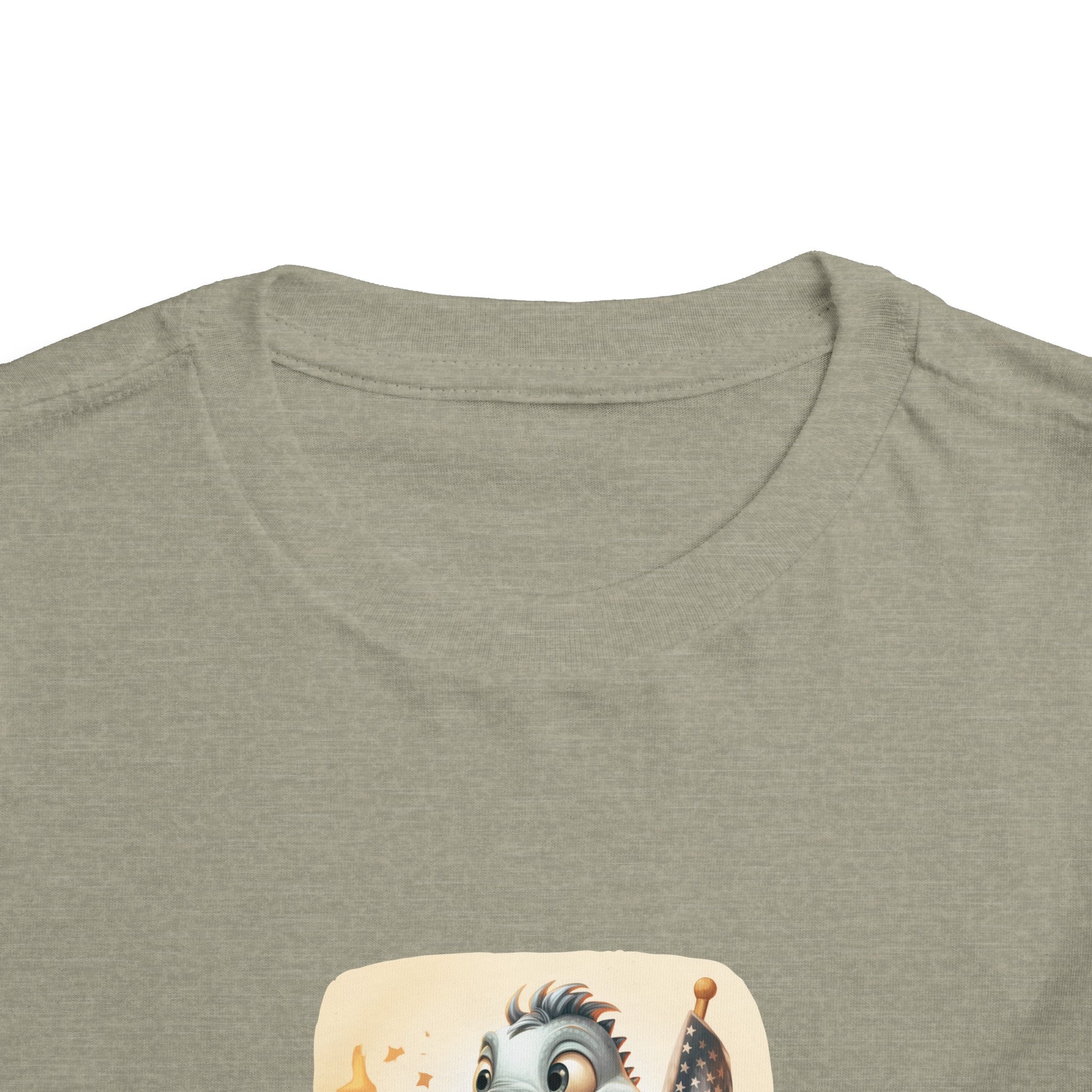 Uplift any child's wardrobe with a custom dinosaur kid's t-shirt. The Bella Canvas short sleeve tee for toddlers is a 100% Airlume combed and ring-spun cotton jersey with a tear-away label for extra comfort. Choose your favorite color out of a big variety, and make unique staples that toddlers will happily wear every day. Each t-shirt features a patriotic pre-historic dinosaur and post's name in a unique, jurassic-inspired font. 100% Airlume combed and ringspun cotton (fiber content may vary for different colors) Extra light fabric (3.9 oz/yd² (132 g/m²)) Tear-away label 2T 3T 4T 5T Width, in 12.00 13.00 14.00 15.00 Length, in 15.50 16.50 17.50 18.280