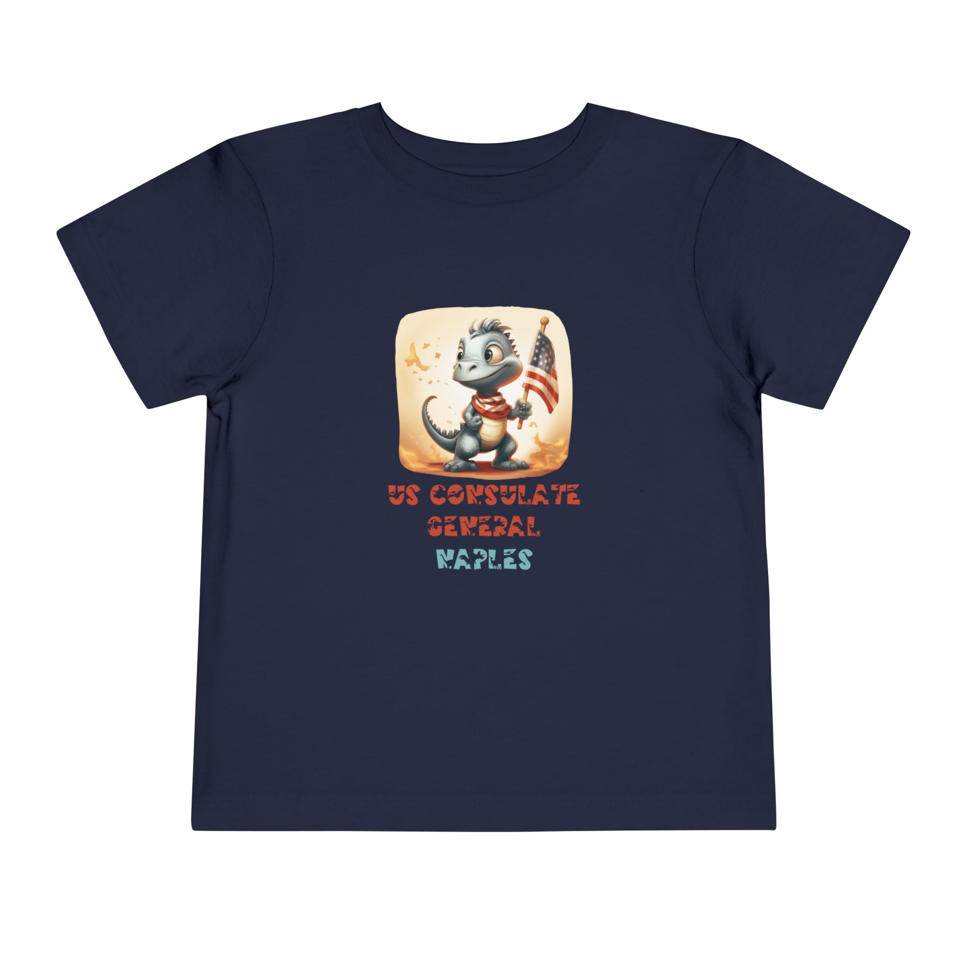 Uplift any child's wardrobe with a custom dinosaur kid's t-shirt. The Bella Canvas short sleeve tee for toddlers is a 100% Airlume combed and ring-spun cotton jersey with a tear-away label for extra comfort. Choose your favorite color out of a big variety, and make unique staples that toddlers will happily wear every day. Each t-shirt features a patriotic pre-historic dinosaur and post's name in a unique, jurassic-inspired font. 100% Airlume combed and ringspun cotton (fiber content may vary for different colors) Extra light fabric (3.9 oz/yd² (132 g/m²)) Tear-away label 2T 3T 4T 5T Width, in 12.00 13.00 14.00 15.00 Length, in 15.50 16.50 17.50 18.255