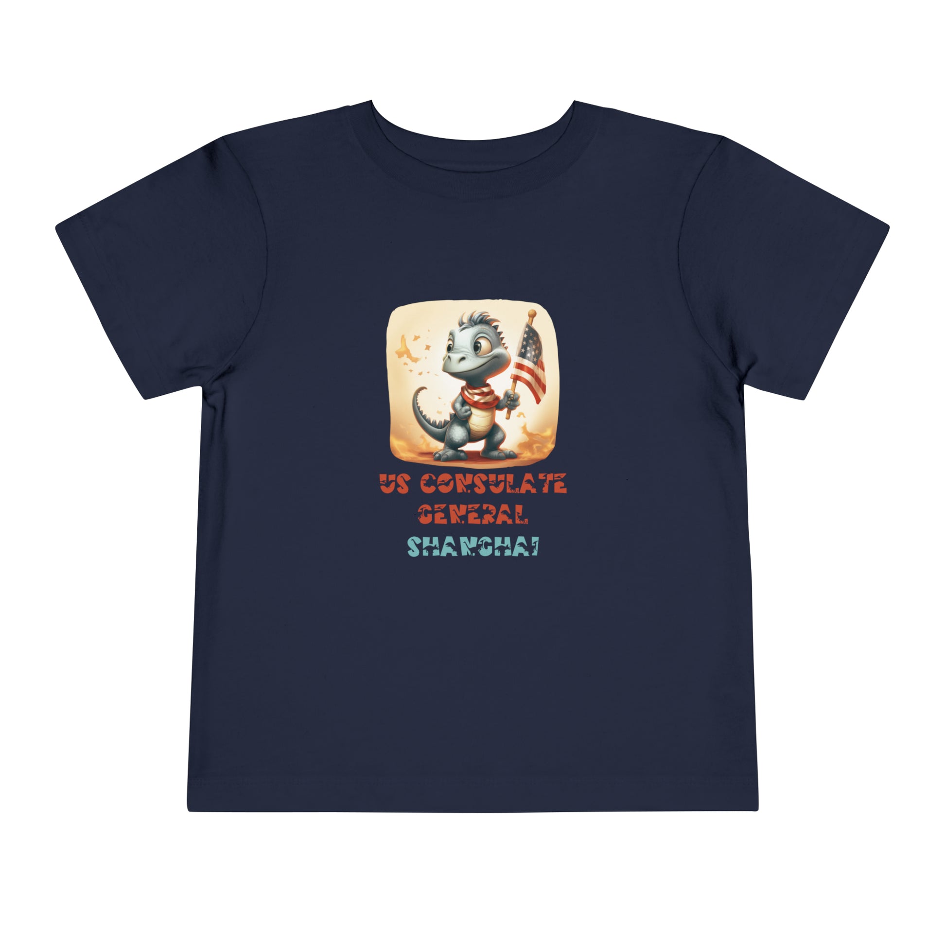 Choose your favorite color out of a big variety, and make unique staples that toddlers will happily wear every day. Each t-shirt features a patriotic pre-historic dinosaur and post's name in a unique, jurassic-inspired font.
