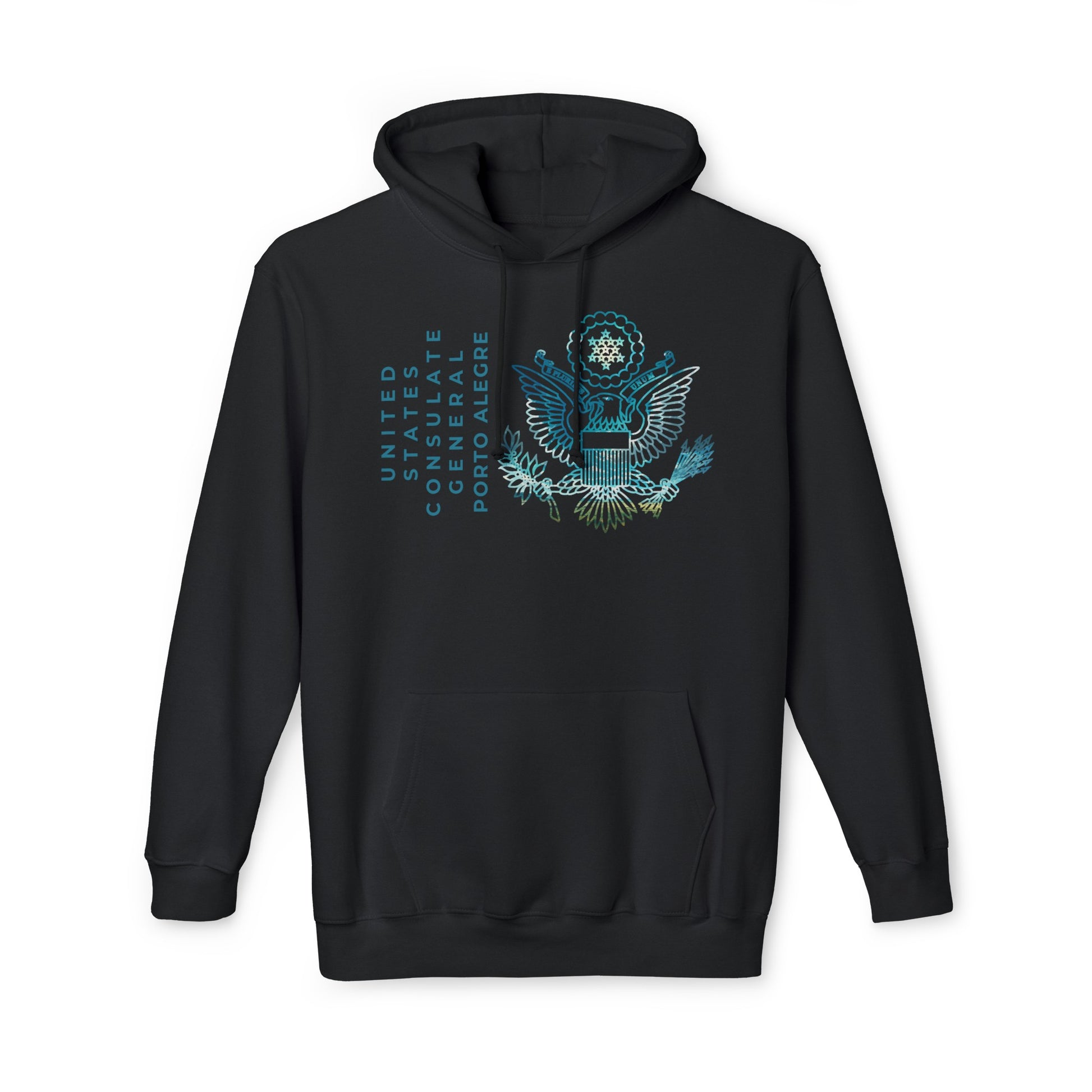 You don't want to purchase clothing with more frequent flyer miles than you! This hooded sweatshirt is from Bayside and is proudly manufactured in the United States from the planting of the cotton to the printing of the stunning design, this hoodie has never traveled away from home until it travels to you.