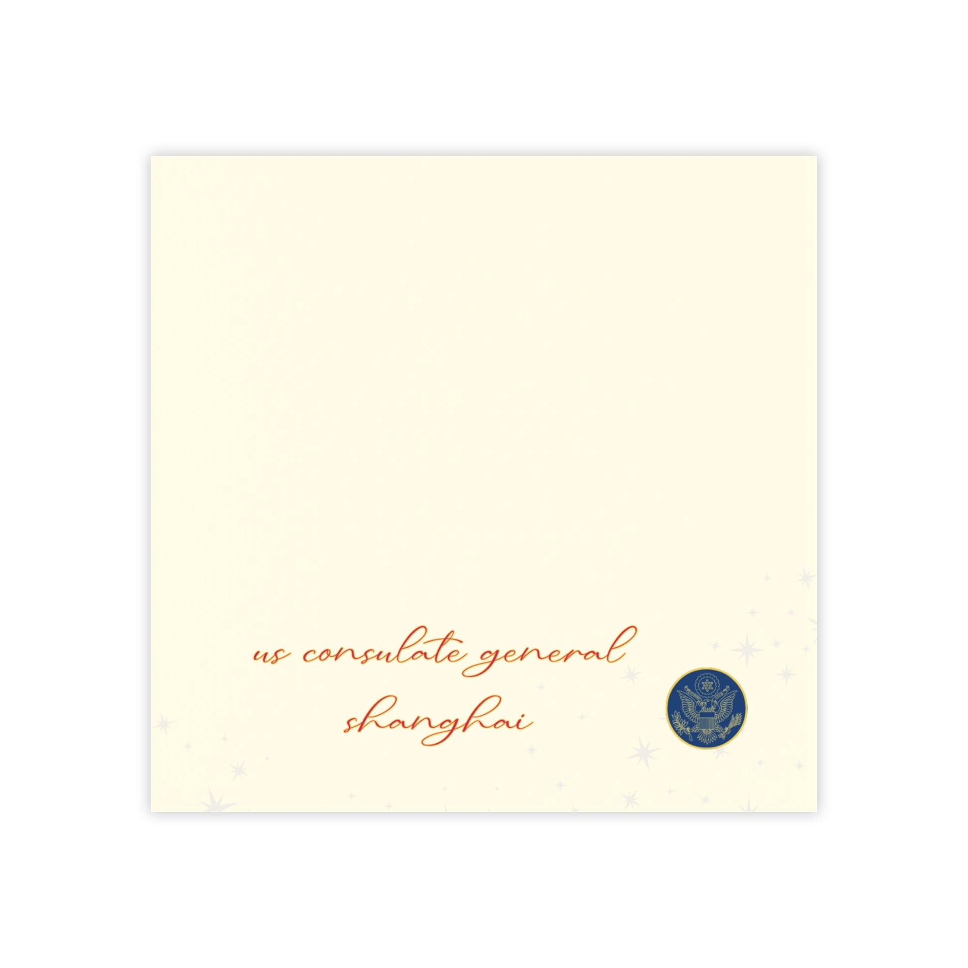 - Material: 75.2 gsm white uncoated paper with a light cream background printed on as part of the design.