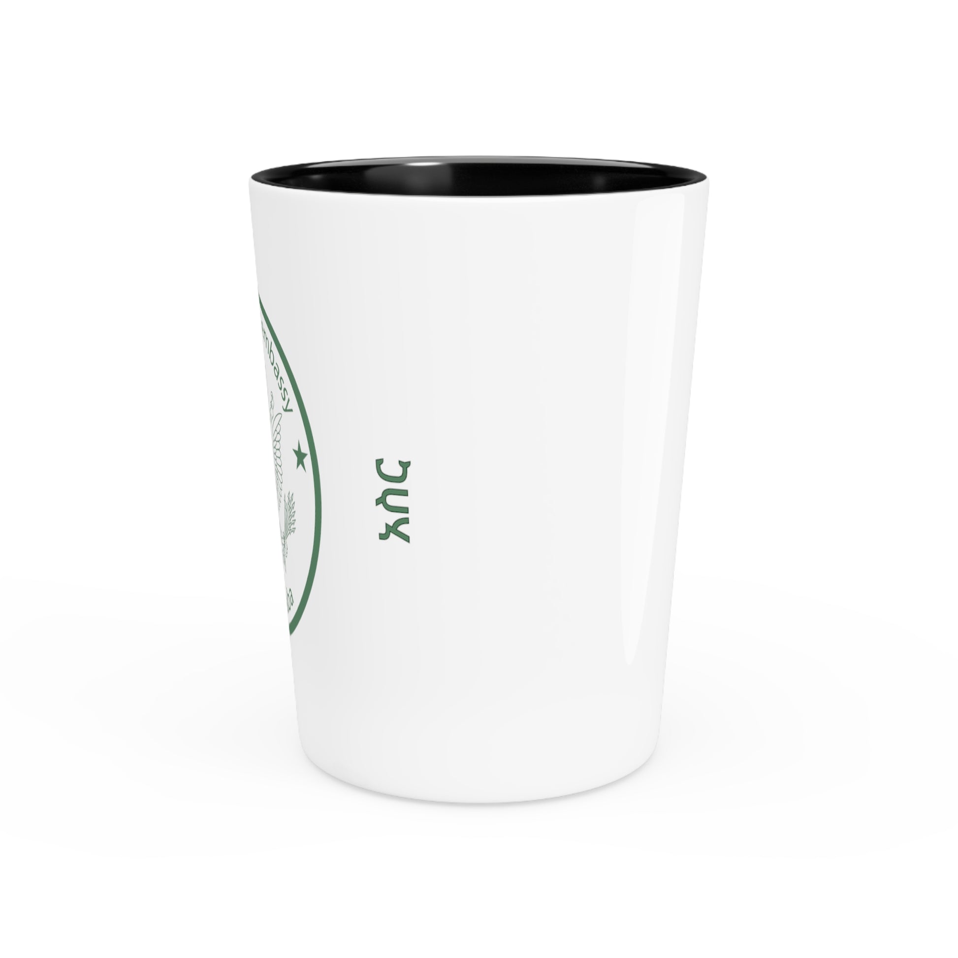 Made with ceramic material, this custom shot glass comes with a black interior. These are made only when you place your order and are produced in any quanity you like. They are great as a unique gift idea as well.