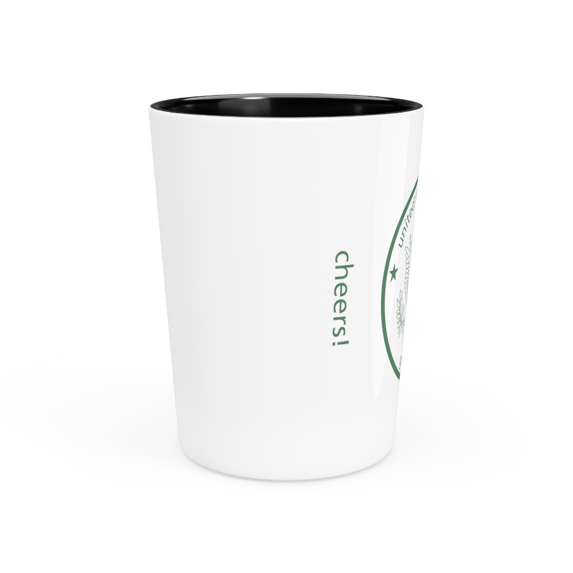 Made with ceramic material, this custom shot glass comes with a black interior. These are made only when you place your order and are produced in any quanity you like. They are great as a unique gift idea as well.