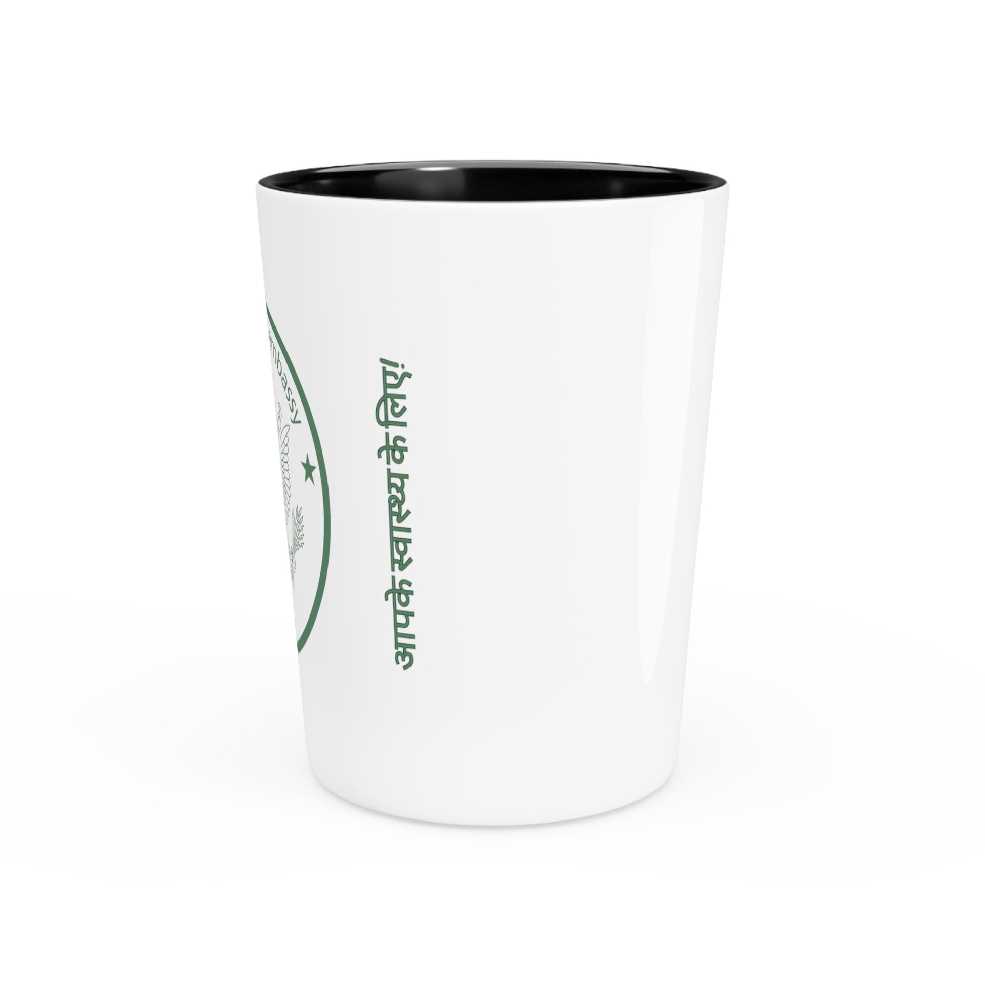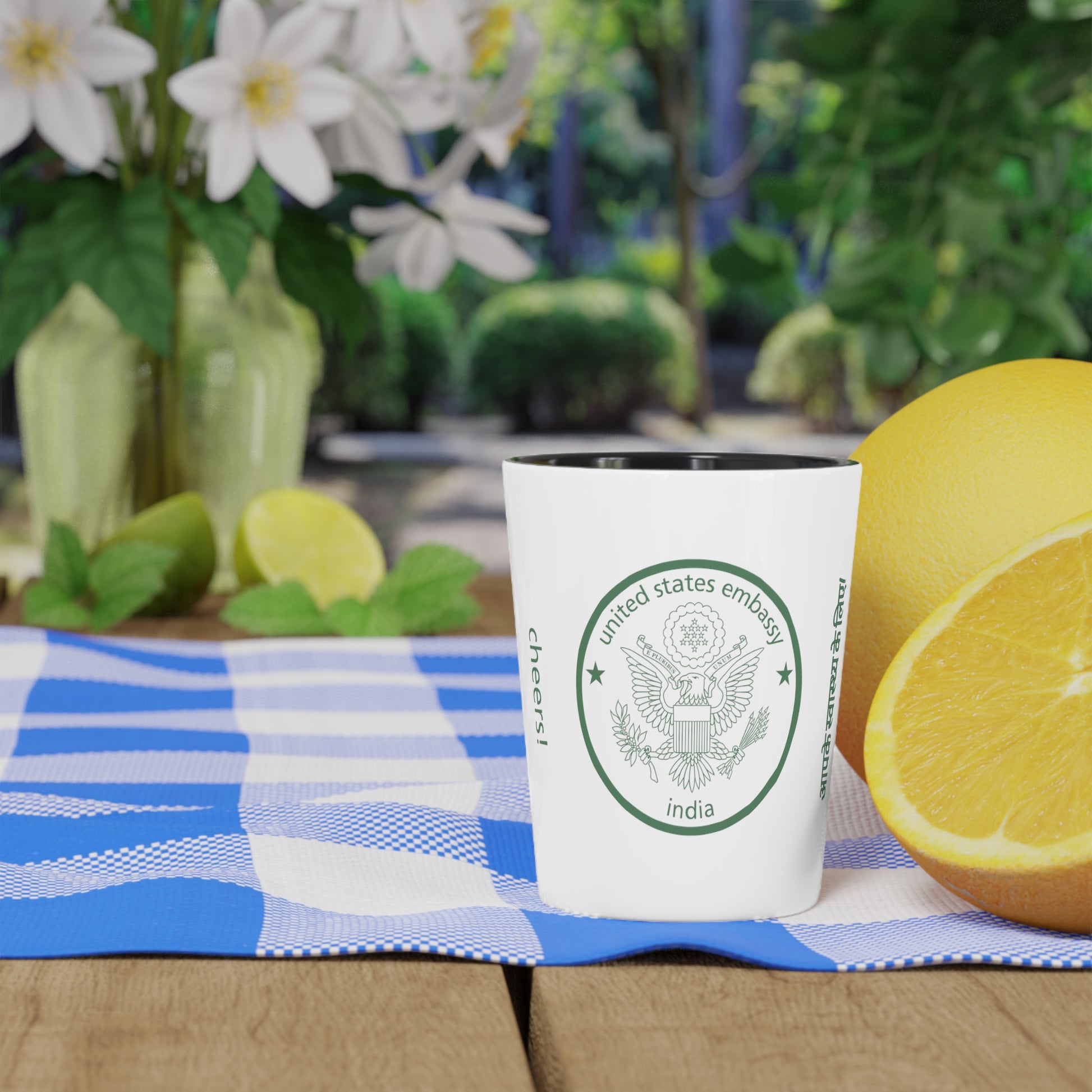Made with ceramic material, this custom shot glass comes with a black interior. These are made only when you place your order and are produced in any quanity you like. They are great as a unique gift idea as well.