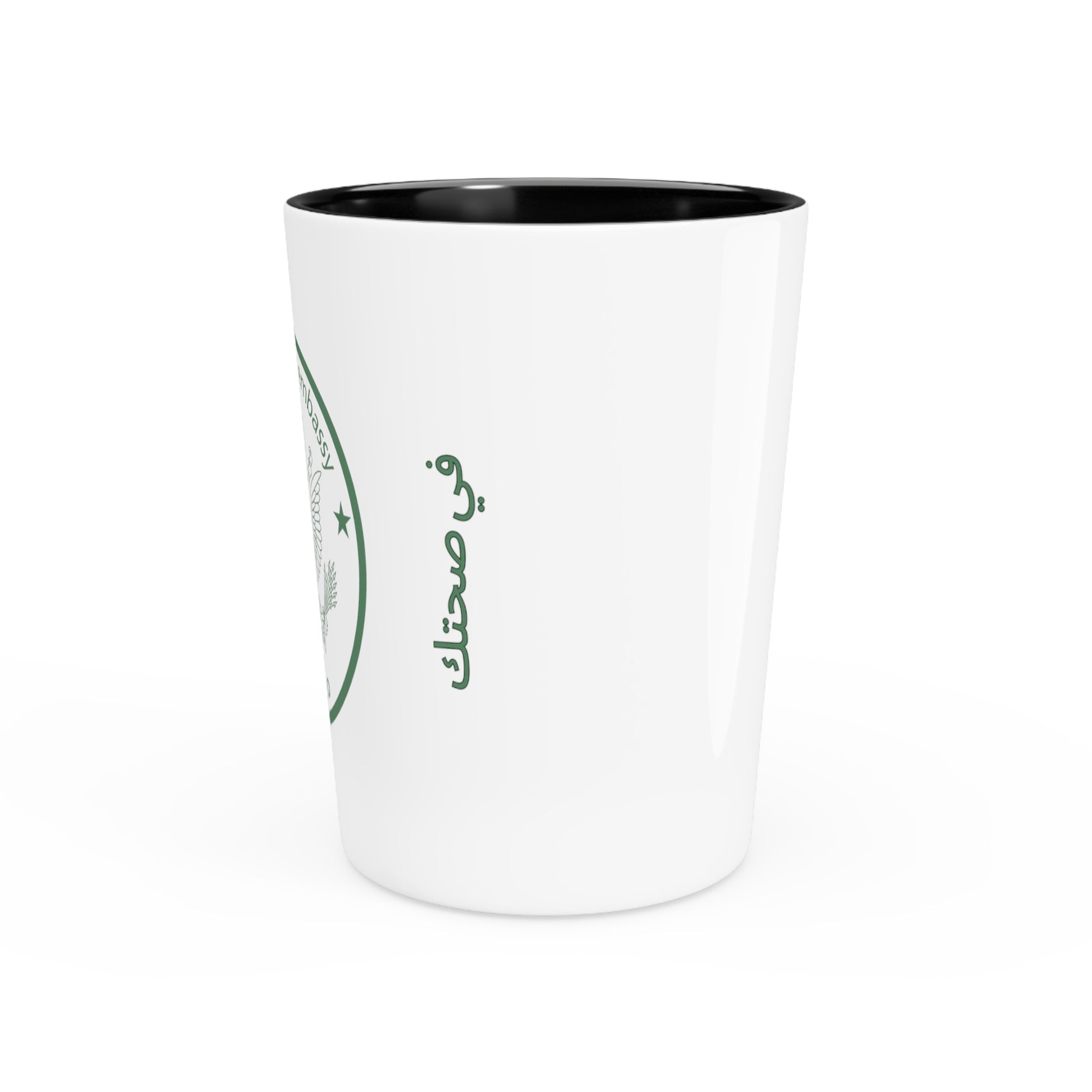 Made with ceramic material, this custom shot glass comes with a black interior. These are made only when you place your order and are produced in any quanity you like. They are great as a unique gift idea as well.
