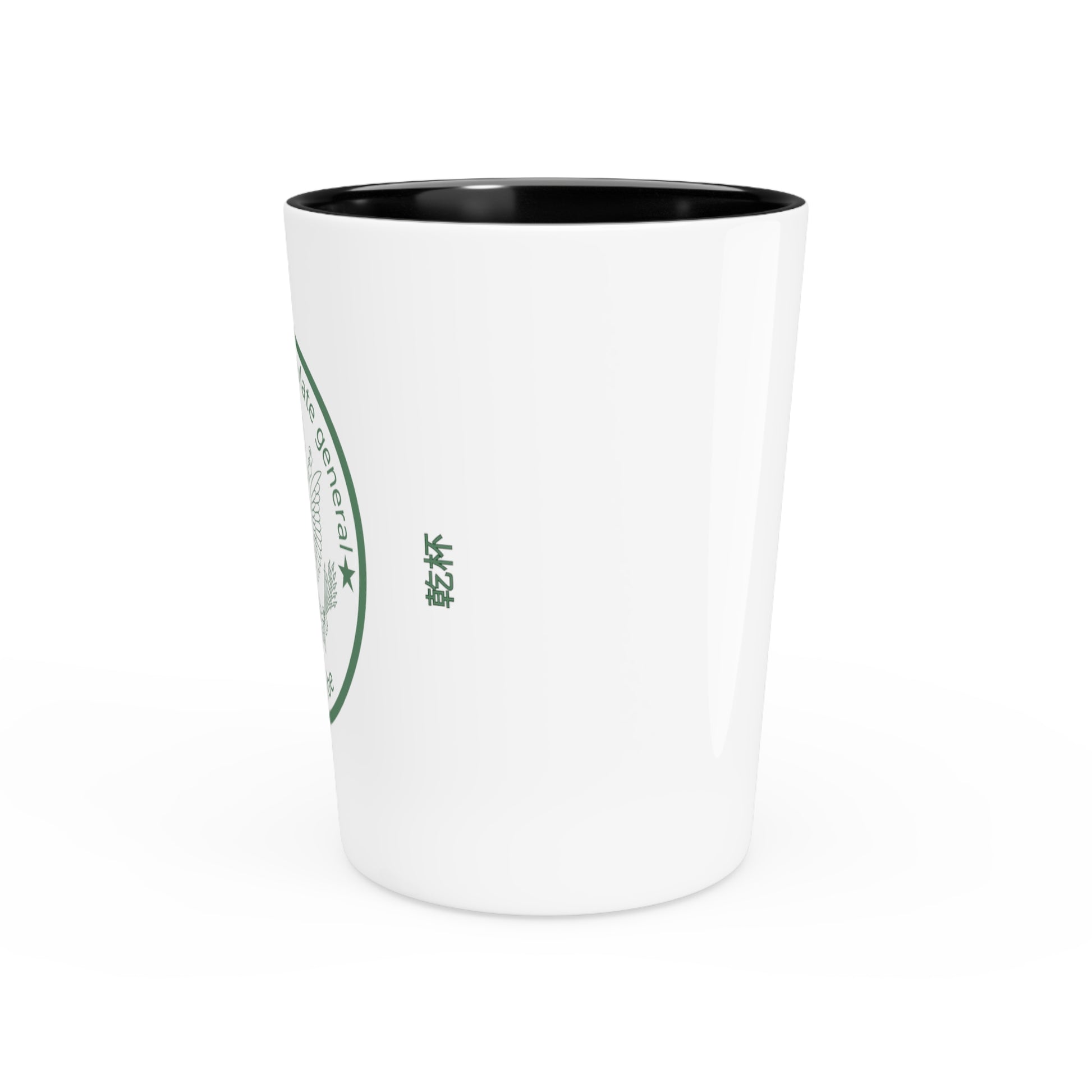 Made with ceramic material, this custom shot glass comes with a black interior. These are made only when you place your order and are produced in any quanity you like. They are great as a unique gift idea as well.