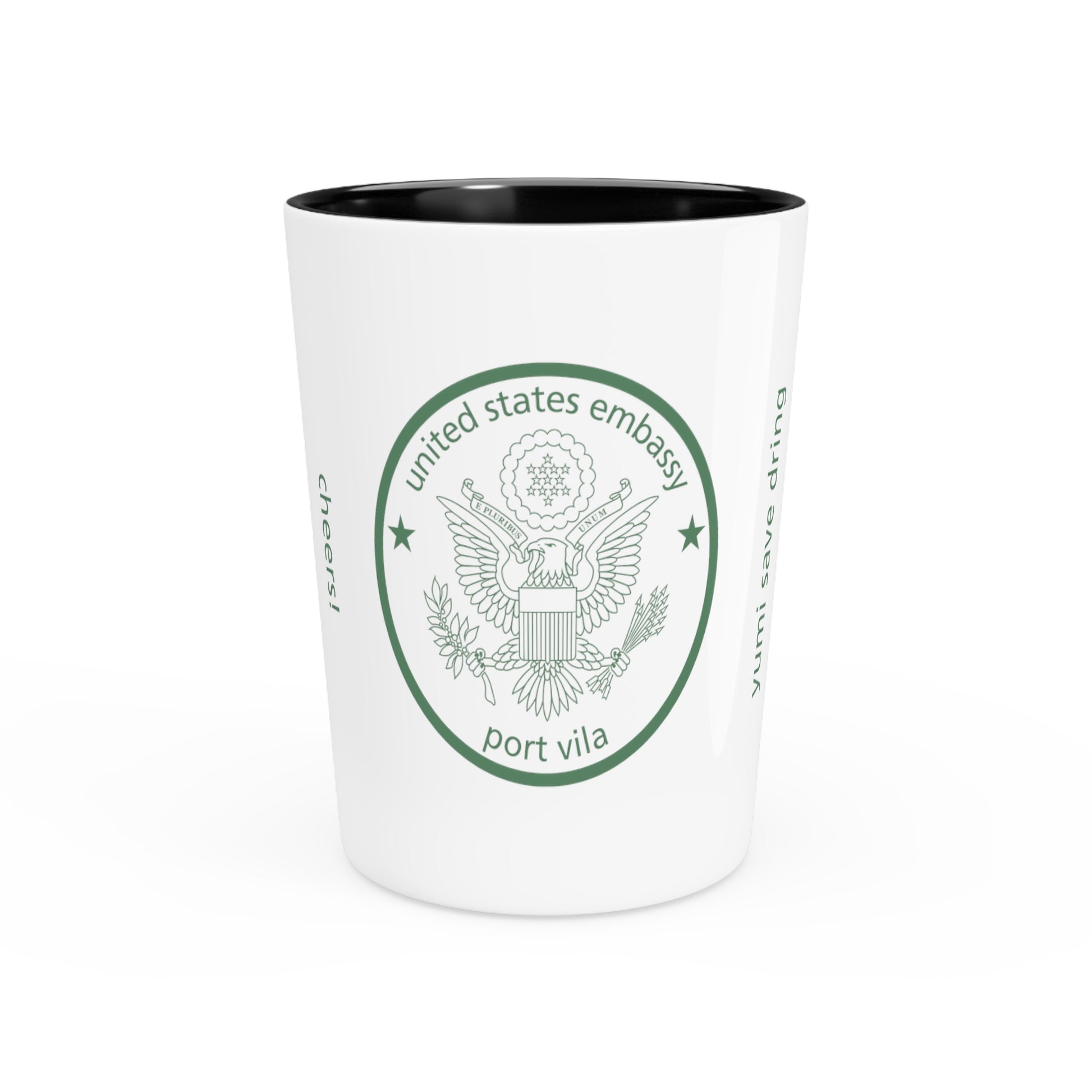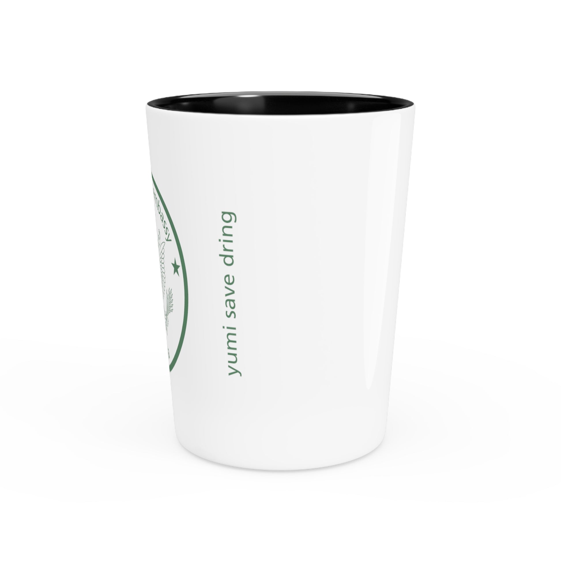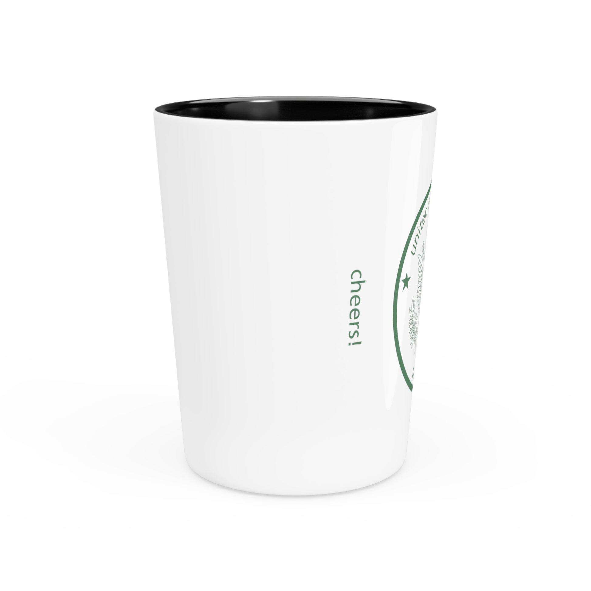 Made with ceramic material, this custom shot glass comes with a black interior. These are made only when you place your order and are produced in any quanity you like. They are great as a unique gift idea as well.