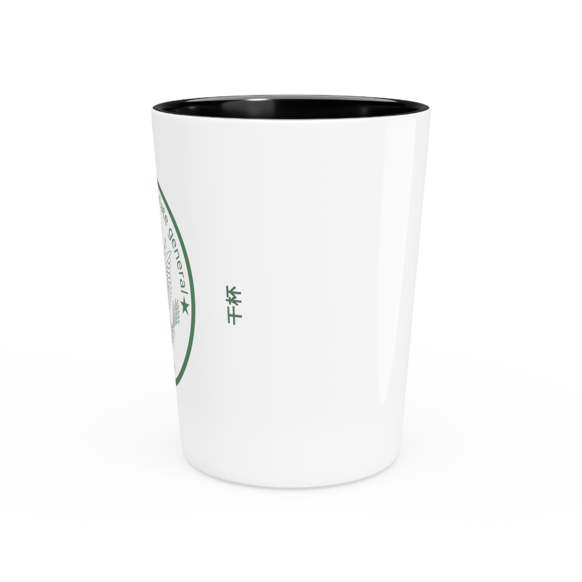 Made with ceramic material, this custom shot glass comes with a black interior. These are made only when you place your order and are produced in any quanity you like. They are great as a unique gift idea as well.