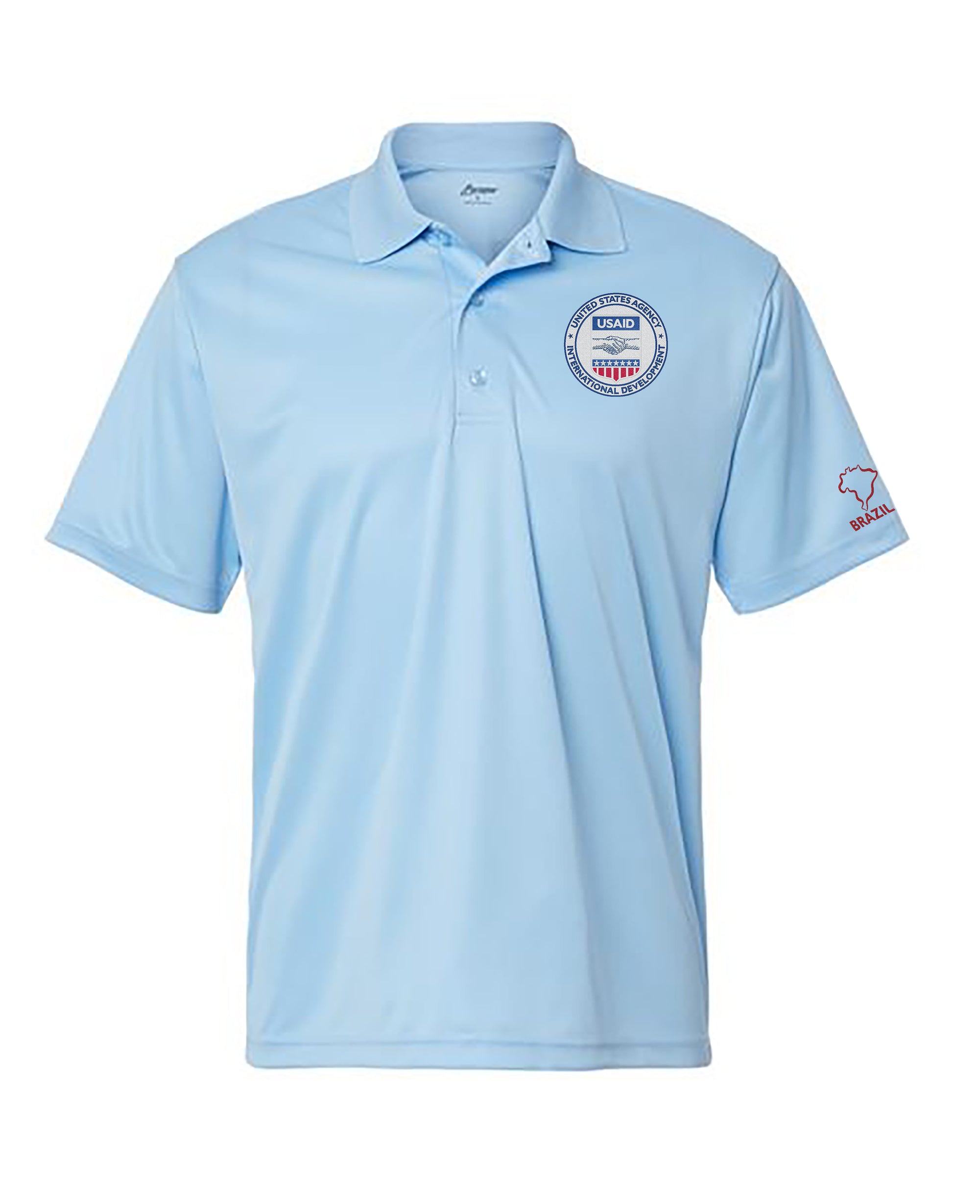 Look your best on the links, the tennis court, on a lunch out with friends, or at the office. This Paragon Sebring performance polo will make you look terrific, no matter the environment. We offer this polo in a wide array of sizes and colors. Each polo features a mission/program name embroidered on the sleeve, many include a stylized outline of the host nation map, along with the USAID logo on a white background embroidered on the left chest.