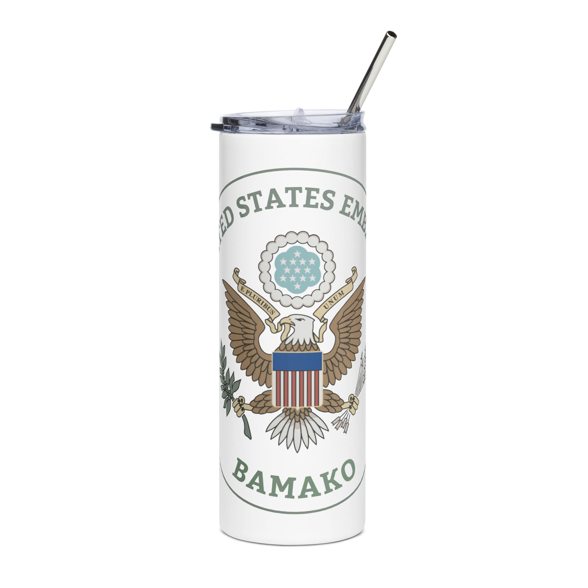 Enjoy hot or cold drinks on the go with this stylish stainless steel tumbler! This reusable tumbler with a metal straw is a perfect combo for hot or cold drinks at any time of the day. This tumbler features a post logo in a slightly retro style. Spill resistant lid helps keep your drinks in place.