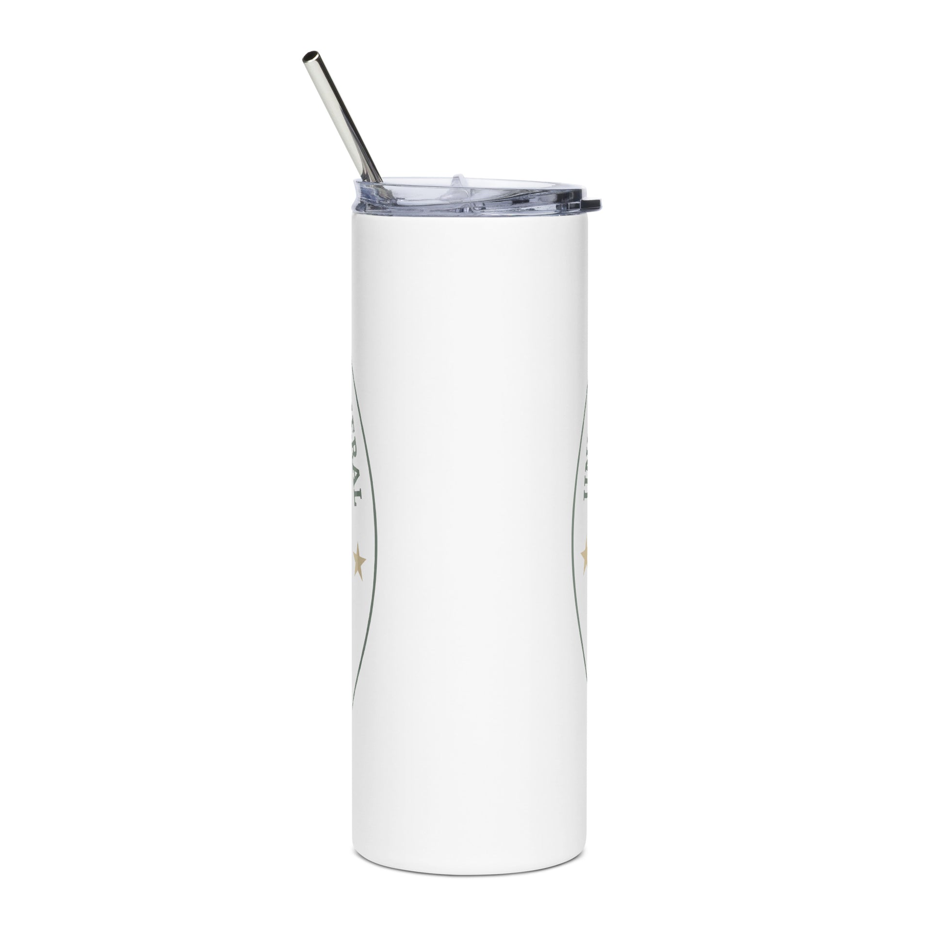 Enjoy hot or cold drinks on the go with this stylish stainless steel tumbler! This reusable tumbler with a metal straw is a perfect combo for hot or cold drinks at any time of the day. This tumbler features a post logo in a slightly retro style. Spill resistant lid helps keep your drinks in place.