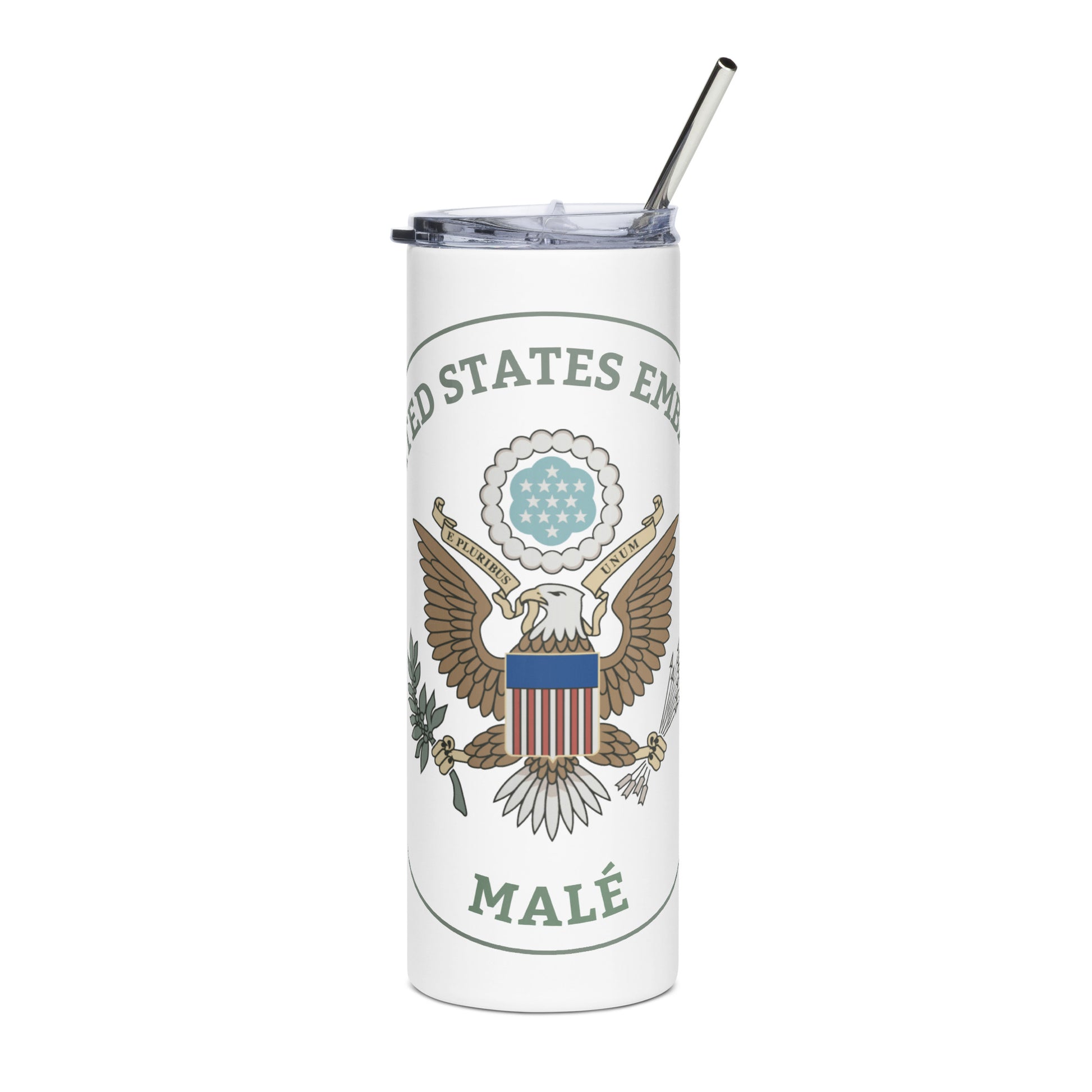 Enjoy hot or cold drinks on the go with this stylish stainless steel tumbler! This reusable tumbler with a metal straw is a perfect combo for hot or cold drinks at any time of the day. This tumbler features a post logo in a slightly retro style. Spill resistant lid helps keep your drinks in place.