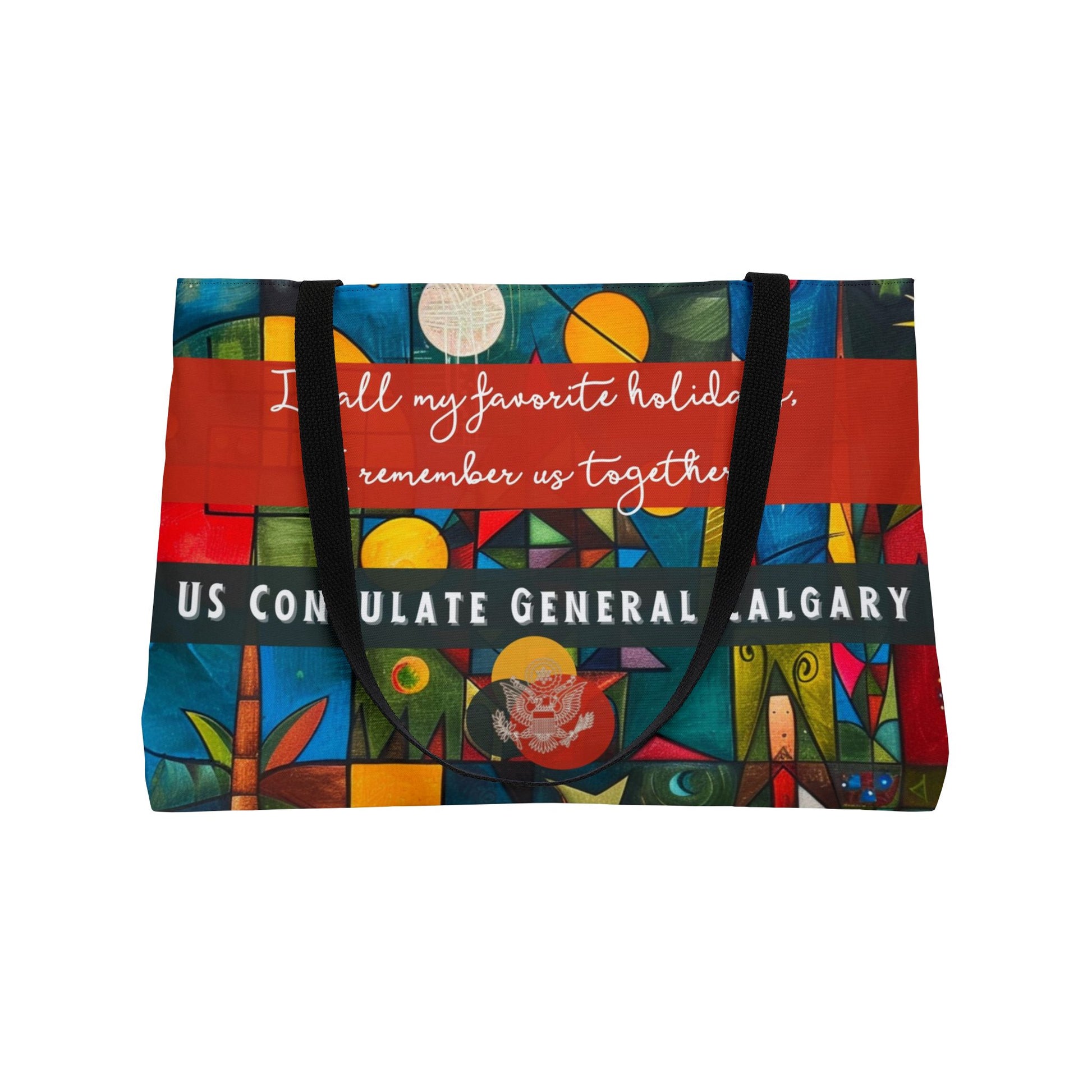 Thinking about the holidays, we got Klee in the brain. We can't say why, but there you go. This colorful take on a night in Bethlehem forms the backdrop to a touching message about what really matters during the holidays - being together with people you love. Whether you are carrying gifts, potluck dishes to the Embassy Christmas party, or a few beach supplies for that southern hemisphere summer Christmas, this bag can fit it all. Or buy a few and give them away as gifts to friends and family, encouraging them to ditch the plastic and seize the colorful one-of-a-kind design.