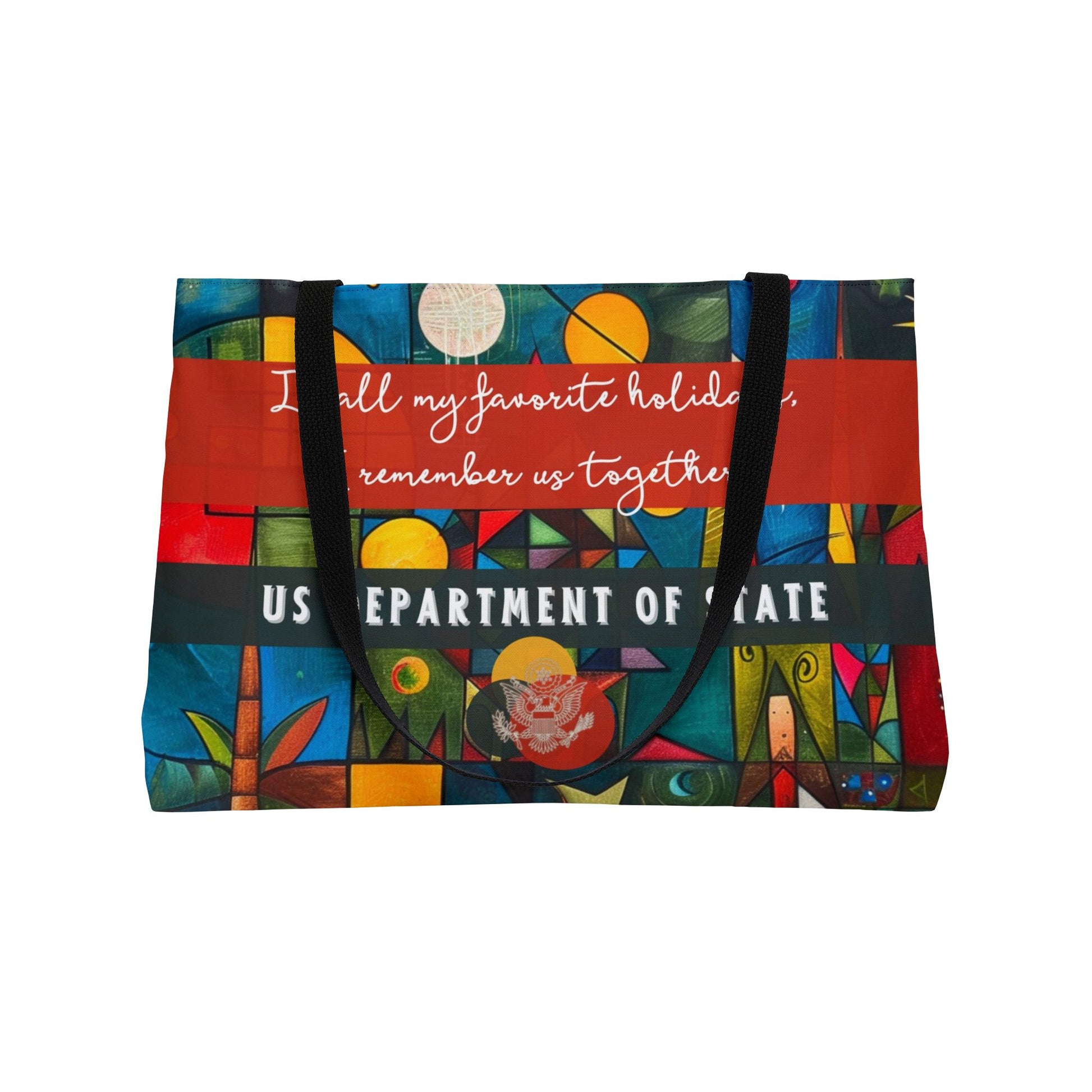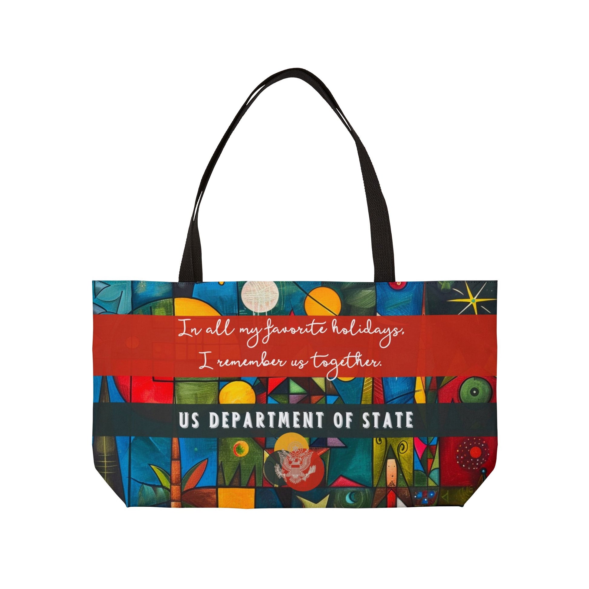 Thinking about the holidays, we got Klee in the brain. We can't say why, but there you go. This colorful take on a night in Bethlehem forms the backdrop to a touching message about what really matters during the holidays - being together with people you love. Whether you are carrying gifts, potluck dishes to the Embassy Christmas party, or a few beach supplies for that southern hemisphere summer Christmas, this bag can fit it all. Or buy a few and give them away as gifts to friends and family, encouraging them to ditch the plastic and seize the colorful one-of-a-kind design.